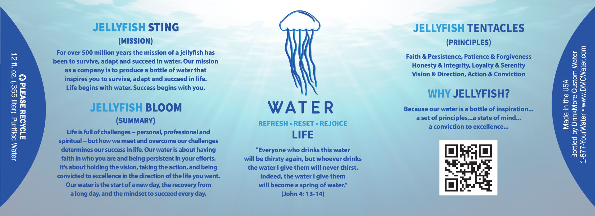 For over 500 million years the mission of a jellyfish has been to survive, adapt and succeed in water. Our mission as a company is to produce a bottle of water that inspires you to survive, adapt and succeed in life.